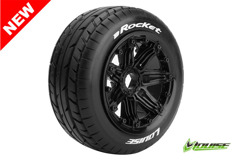 Louise RC tyres LR-T3266B B-ROCKET – 1-5 Buggy Banden – Verlijmd op velg – SPORT – Velgen Zwart 24mm – Hex – Voor – 1 Paar