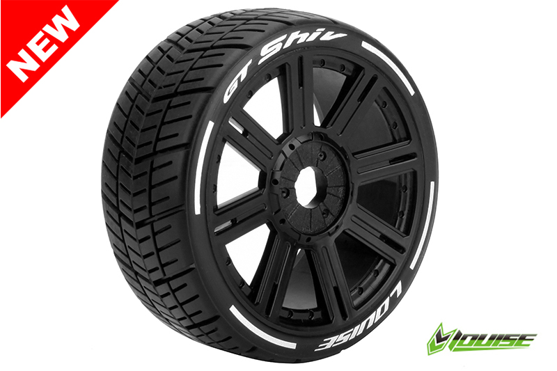 Louise RC tyres LR-T3284SB GT-SHIV – MFT Technology – 1-8 Buggy Banden Set – Verlijmd op velg – Soft – Spaakvelgen Zwart – Zeskant 17mm – 1 Paar