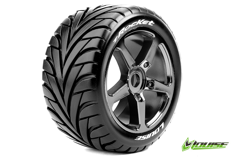 LOUISE RC T-ROCKET Truggy Band+velg Soft Chroom Zwart 0-Offset HEX 17m