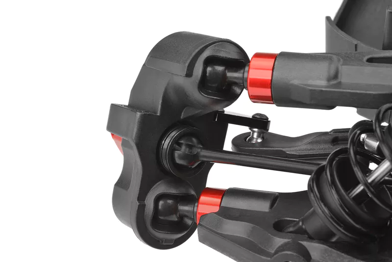 De Spark heeft een scala aan functies, van aluminium servo armen tot een composiet stuurstang uit één stuk en een 3mm 7075 aluminium dubbeldeks Ackermann stuursysteem, deze buggy is gebouwd voor precisie.