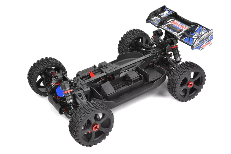Hij is uitgerust met afzonderlijke, verzegelde elektronicaboxen met transponderbevestiging, een XL verstelbare batterijhouder die compatibel is met gewone LiPo-batterijen en een volledige set verzegelde kogellagers van ruimtevaartkwaliteit.
