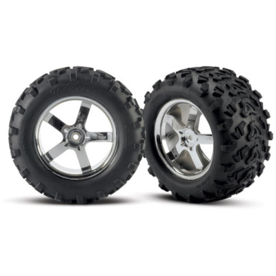 TRX4973R Tires & wheels, assembled, glued (Hurricane chrome wheels, T, TRX4973R