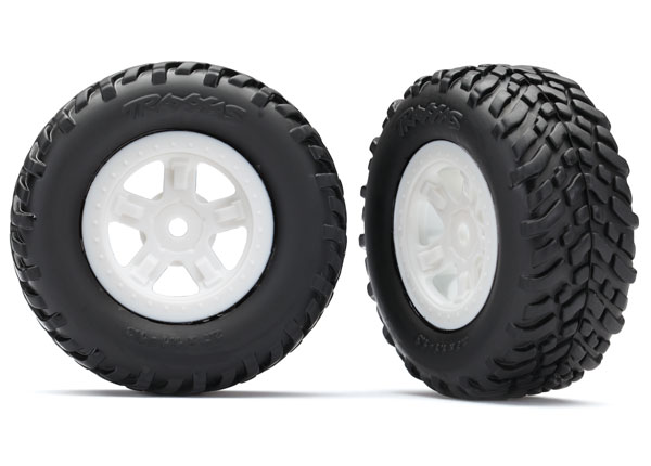 TRX7674X Tires and wheels, assembled, glued (SCT white wheels, SCT off-road racing tires)
