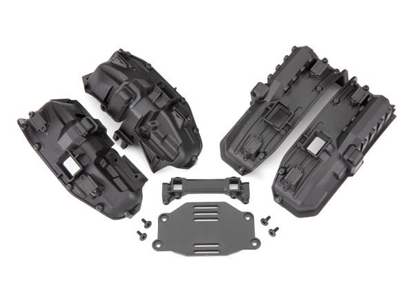 TRX8080X Fenders, inner (narrow), front & rear (for clipless body mounting) (2 each)/ rock light covers (8)/ battery plate/ body mount/ 3×8 flat-head screws (4)/ 2.5×6 CS (10)