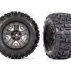 TRX8979 Tires & wheels, assembled, glued (black wheels, belted Sledgehammer All-Terrain tires, dual profile (2.9′ outer, 3.8′ inner), foam inserts) (2) (17mm splined) (TSM rated)