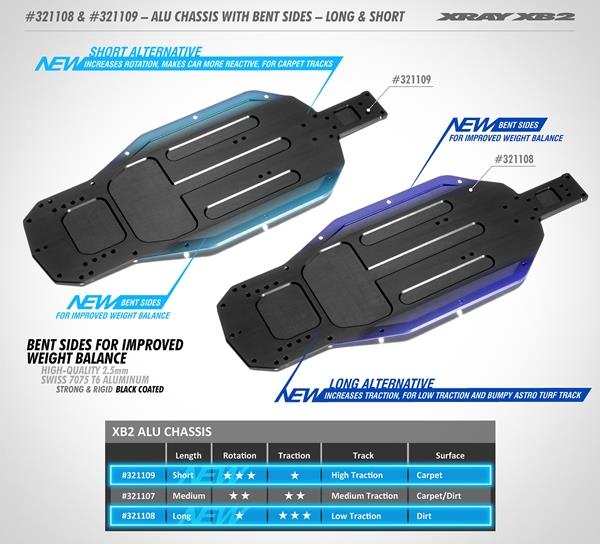 X321108 XT2’21/XB2’21 ALU CHASSIS WITH BENT SIDES – SWISS 7075 T6 – 2.5MM – LONG – V2